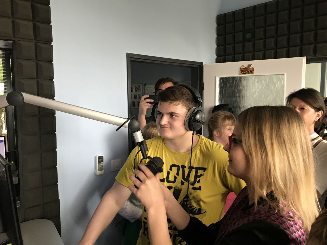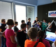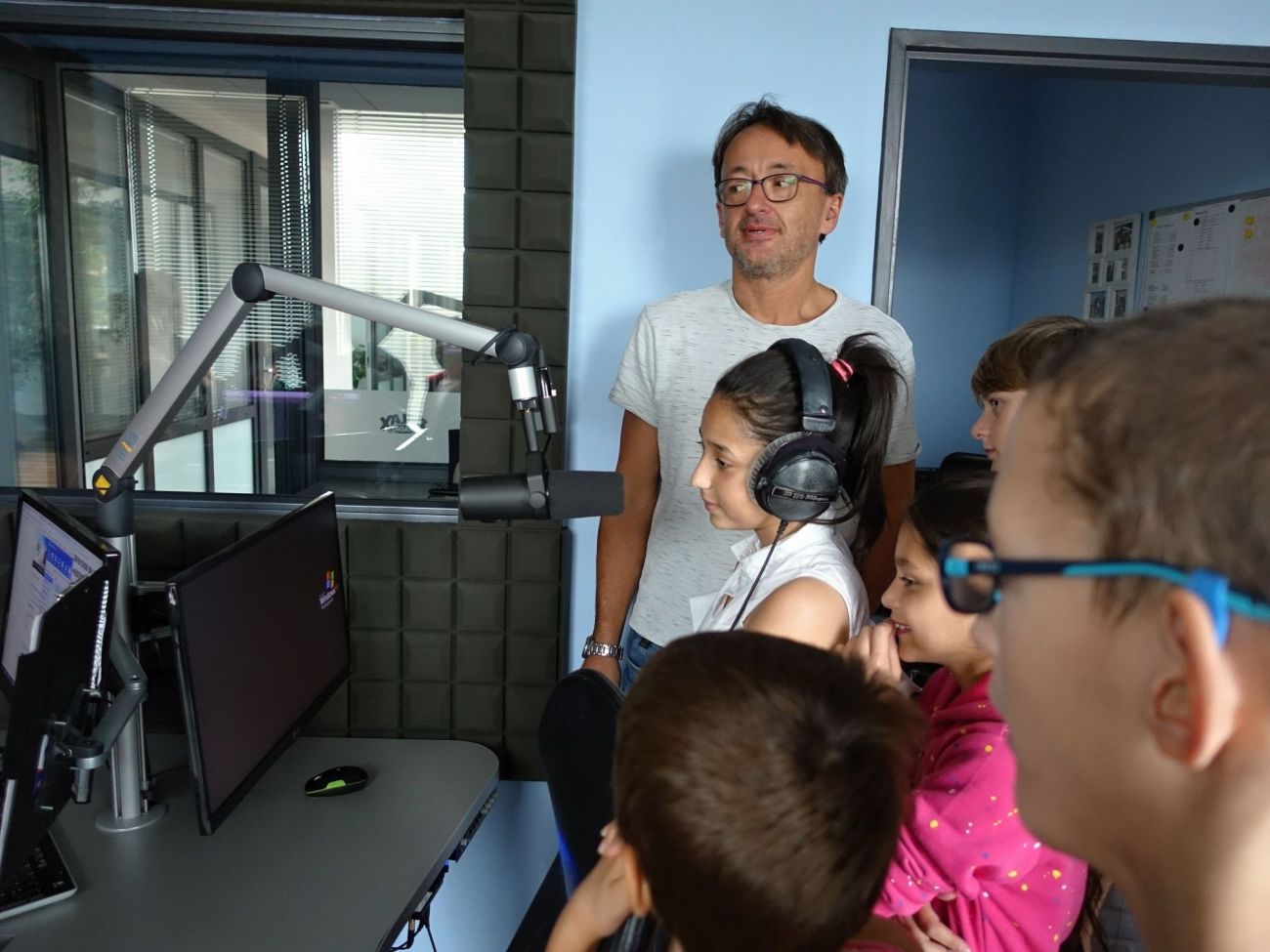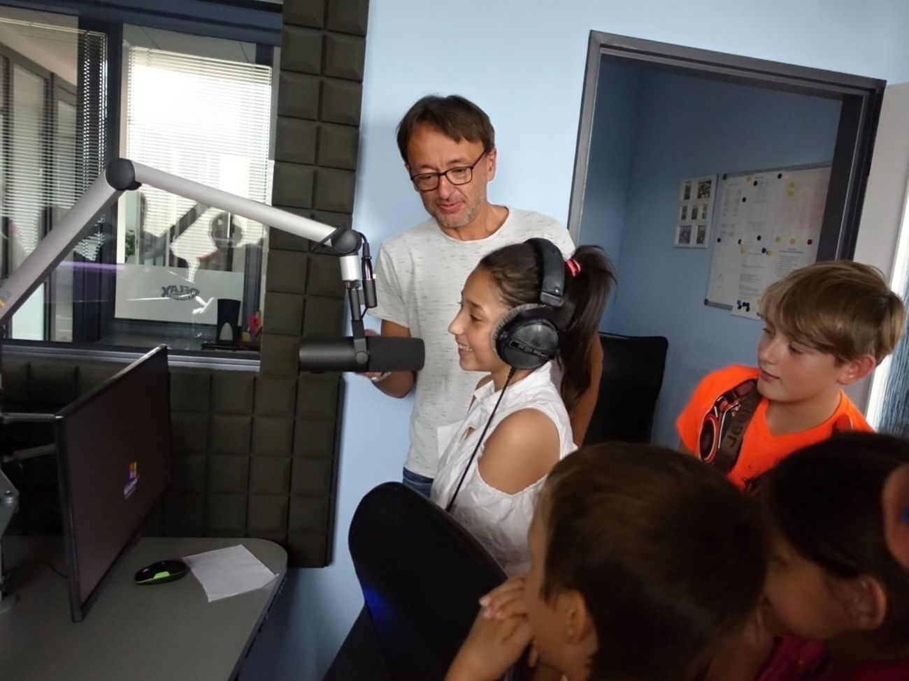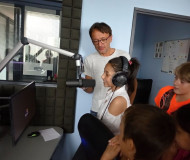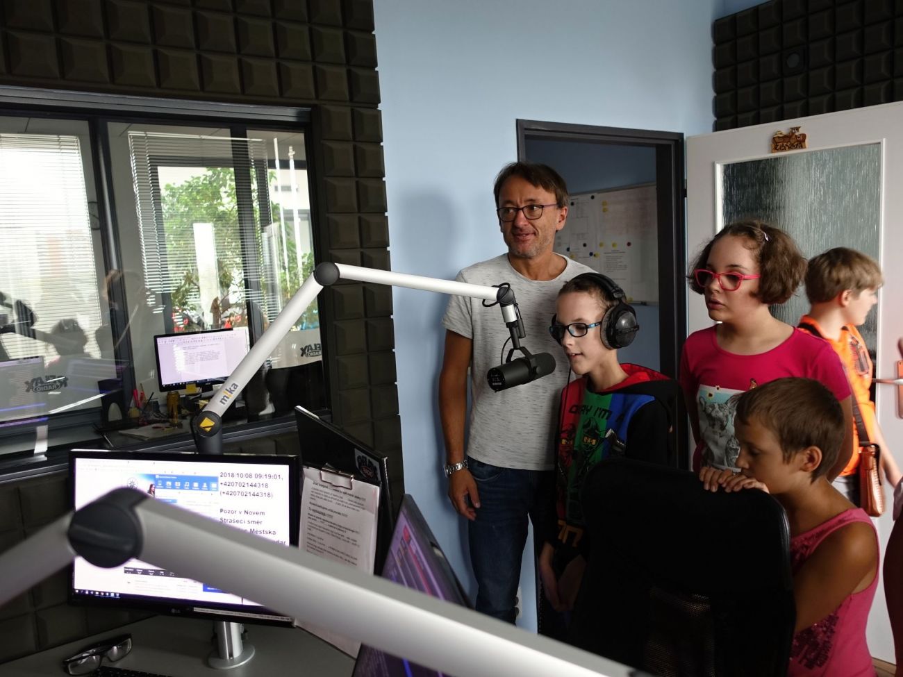 Nejenom, že jsme si mohli všechno prohlédnout, ale my jsme si mohli zahrát i na moderátory. Sice s trochou trémy, ale sluchátka na uších a stát před mikrofonem, no to je něco...Prostě další prima zážitek.