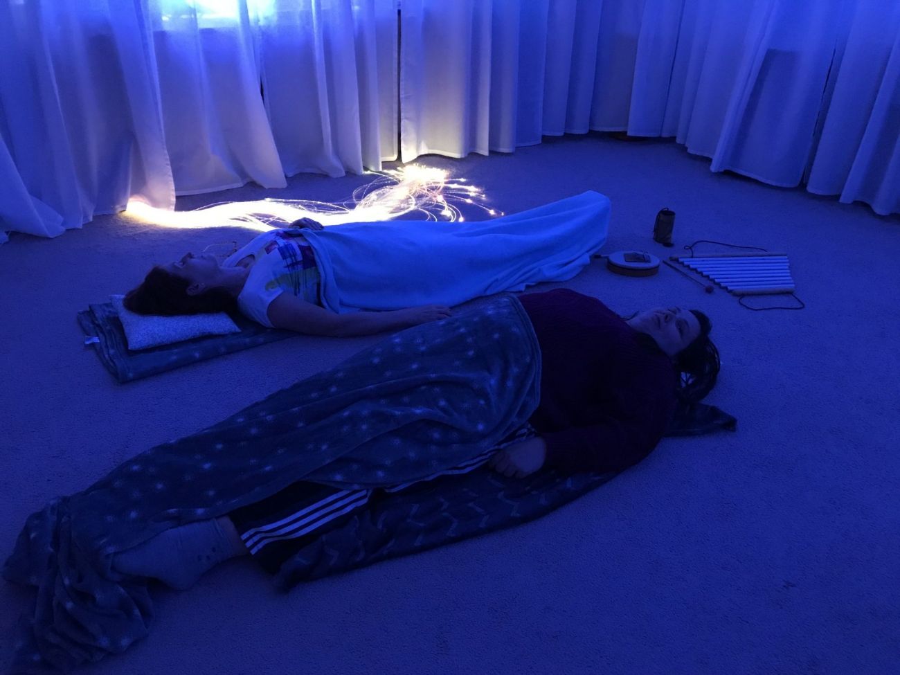 Nabízené relaxace se zúčastnily dvě maminky. Velice užily hraní na léčivé nástroje, klidu a pohody při řízené relaxaci.