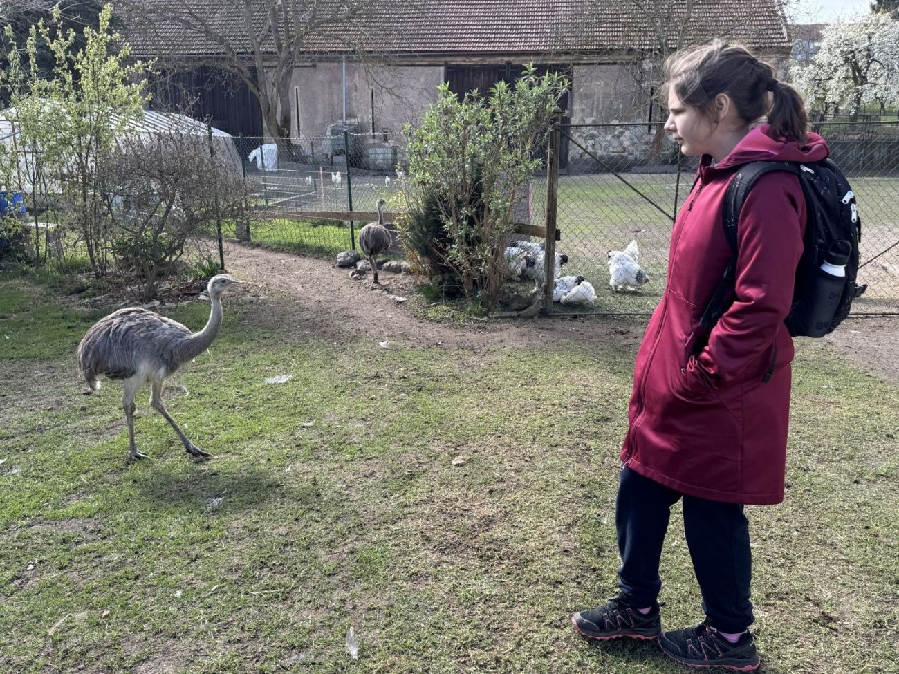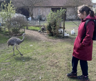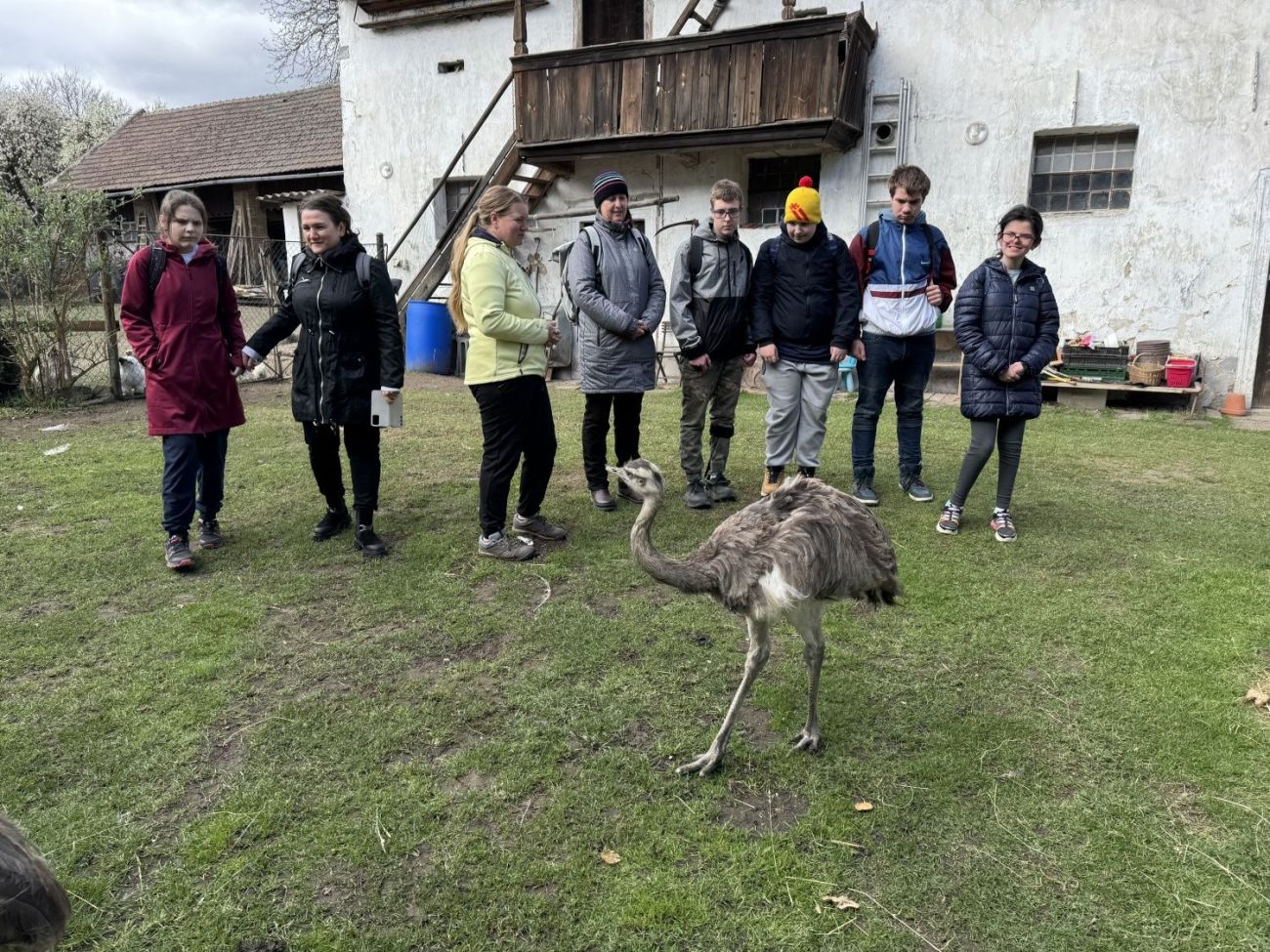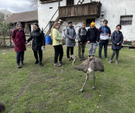 Dnes jsme i přes chladné ráno vyrazili na naplánovaný výlet do Stochova. Městský autobus nás dovezl téměř až na náměstí, kde jsme se nejdříve zašli posilnit do místní cukrárny. Milá obsluha nás tam nechala sníst i vlastní svačinu, abychom načerpali dost sil na další cestu. Poté jsme pokračovali pěšky k nedalekému statku. Hned u vstupu nás přivítali pštrosi, kteří se s námi přišli zvědavě seznámit. Naše první kroky vedly k ohradě s psouny, po nich následovali burunduci (pruhované veverky), nutrie, morčata s mláďaty, králíčci a nejrůznější druhy drůbeže – od slepic a kohoutů až po kachny a holuby. Velkým zážitkem bylo, že jsme si mohli pohladit malá kuřátka a housátka. Cesta pokračovala k ohradám s kozičkami a ovečkami a dokonce jsme zahlédli i malé klokany s mládětem v kapse. Jako živý stožár se před námi tyčil další velký pštros, který nás bedlivě pozoroval. Prohlídku jsme zakončili u obří želvy, která se nenechala vyrušit od své pochoutky a klidně přežvykovala dál, i když ji zrovna ošetřovatelé zvedli. Na úplný závěr jsme si prohlédli košík prázdných pštrosích vajec a vyzkoušeli si, jak jsou neuvěřitelně tvrdá. Po celou dobu nás provázela trpělivá paní průvodkyně, která nám o životě zvířat na statku moc hezky vyprávěla.